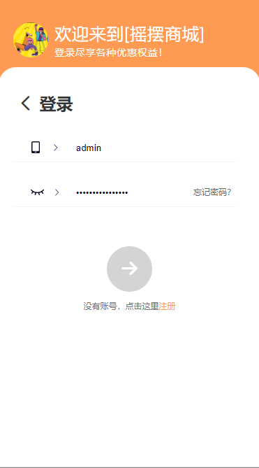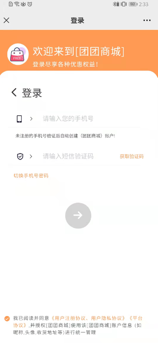 登录页模板一:默认页面,顶部颜色按照系统--商城设置的主题颜色走~