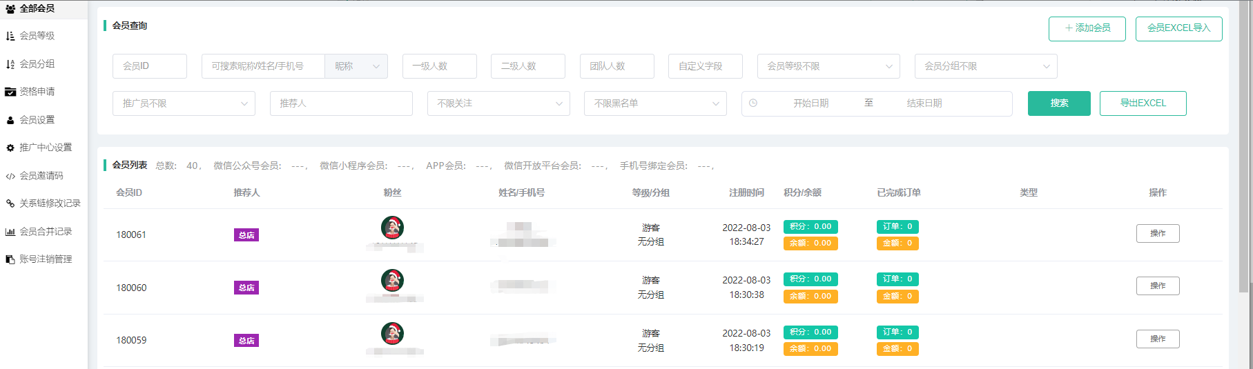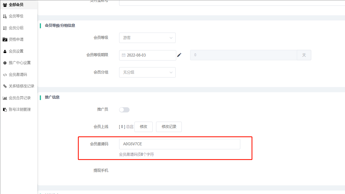 (2)手机号:手机号注册的会员。
