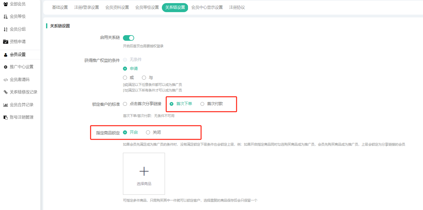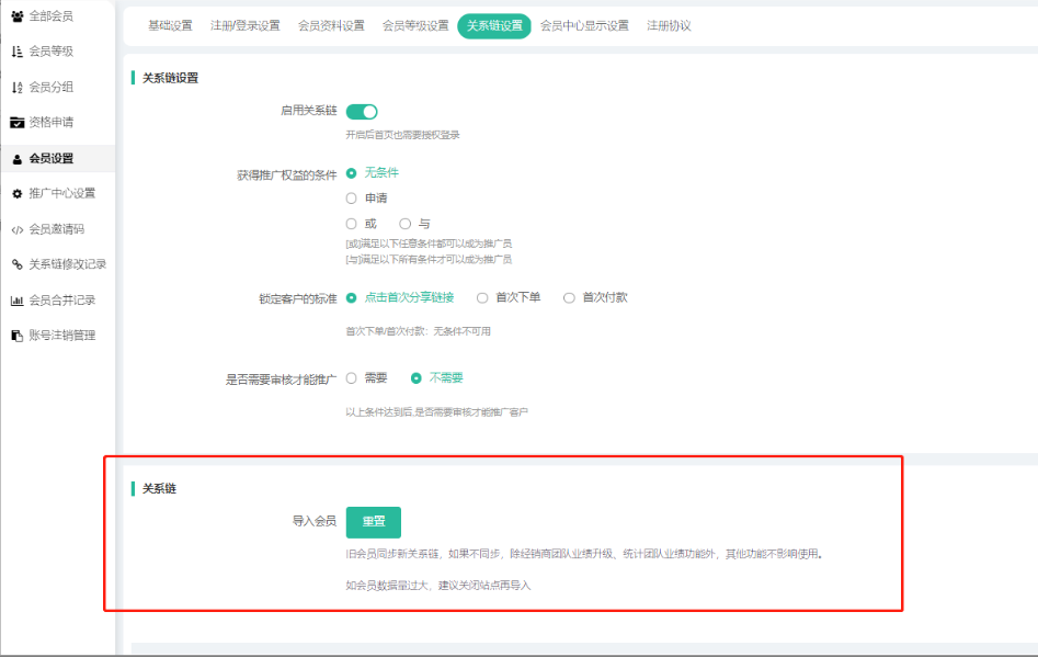 五、会员关系链设置