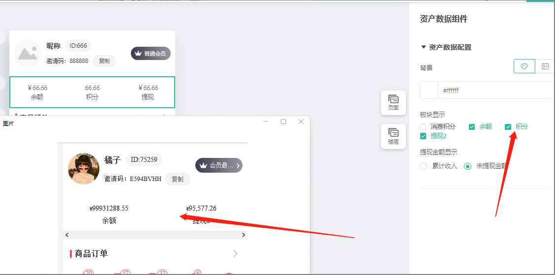 会员中心显示余额/积分/会员ID:开启就显示。仅针对系统默认页面,即不开启页面装修的情况下,才会隐藏.
