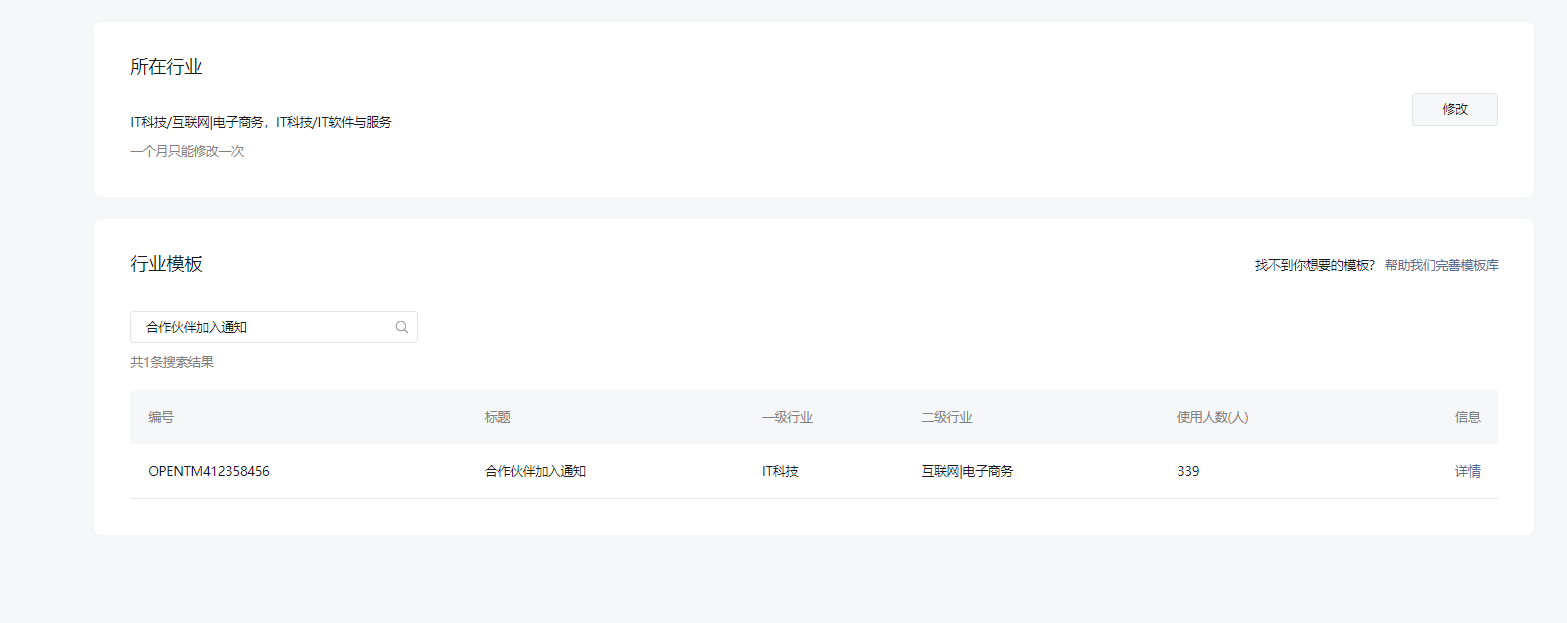 注意:系统使用的默认模板:业务处理通知,微信官方模板已禁用,因此建议客户自行更换可替代的消息模板。
