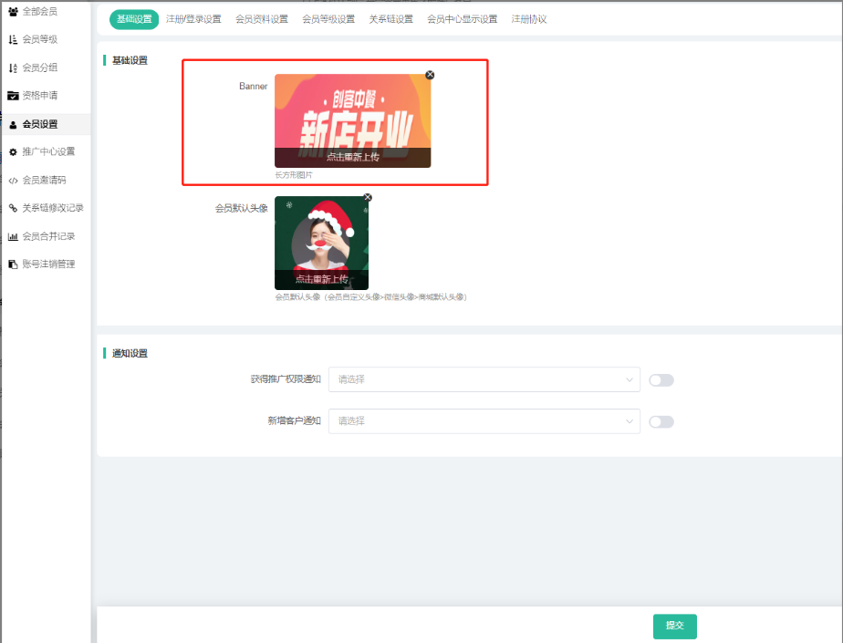 (前端推广申请的顶部图片可进行更换,在会员--会员设置--基础设置Banner进行更改)