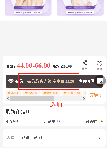 开启后,商品详情页面,显示会员折扣价版块;
