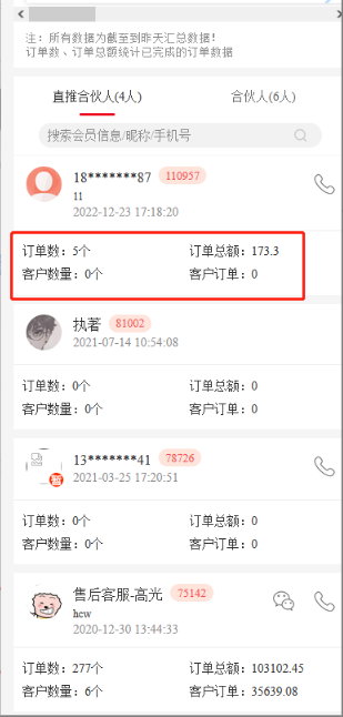 合伙伙伴:下级昵称