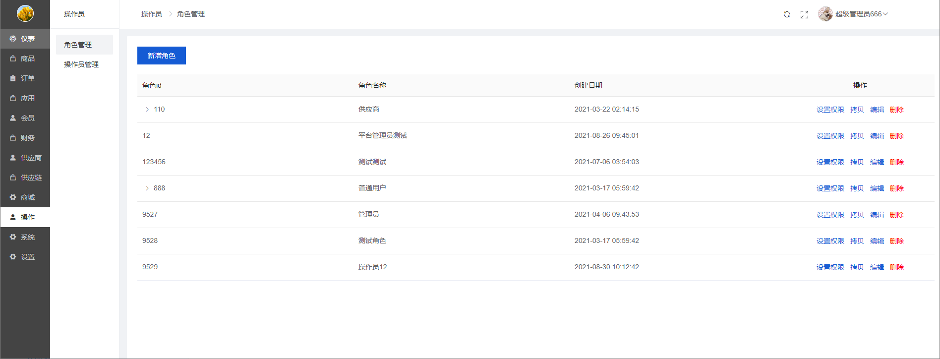 主要是新增/编辑角色设置权限供操作员选择相应的角色与权限