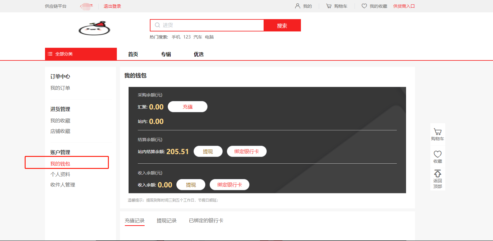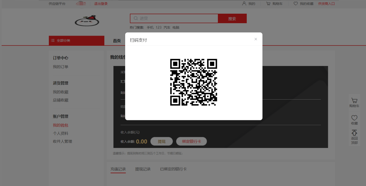 Ø 点击个人中心-左侧我的钱包也可以