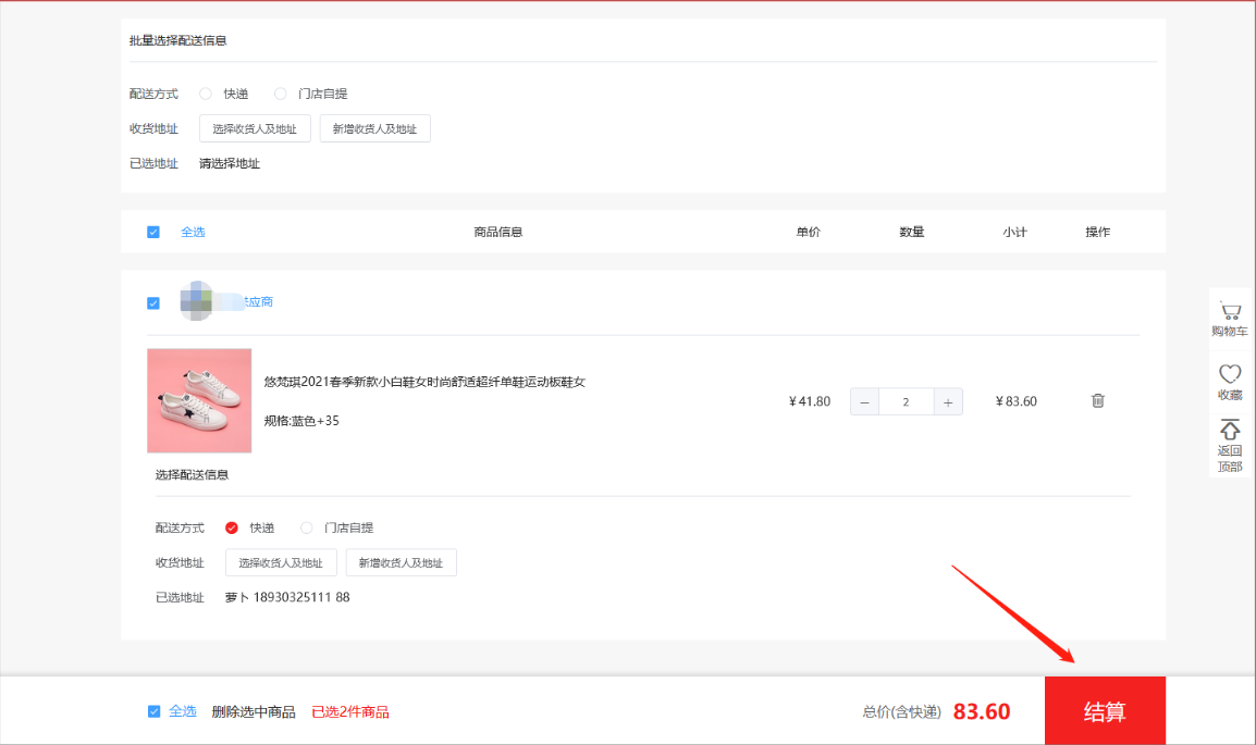 4)导入的表格没问题后,可以点击提交订单,点击去结算、支付,完成下单流程