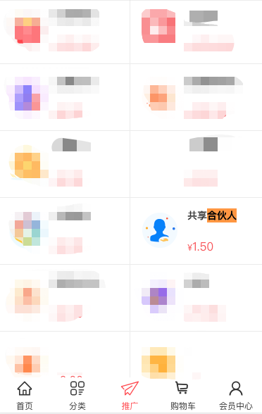 1、后台开启后推广中心有个共享合伙人的入口,点击跳转到合伙人页面