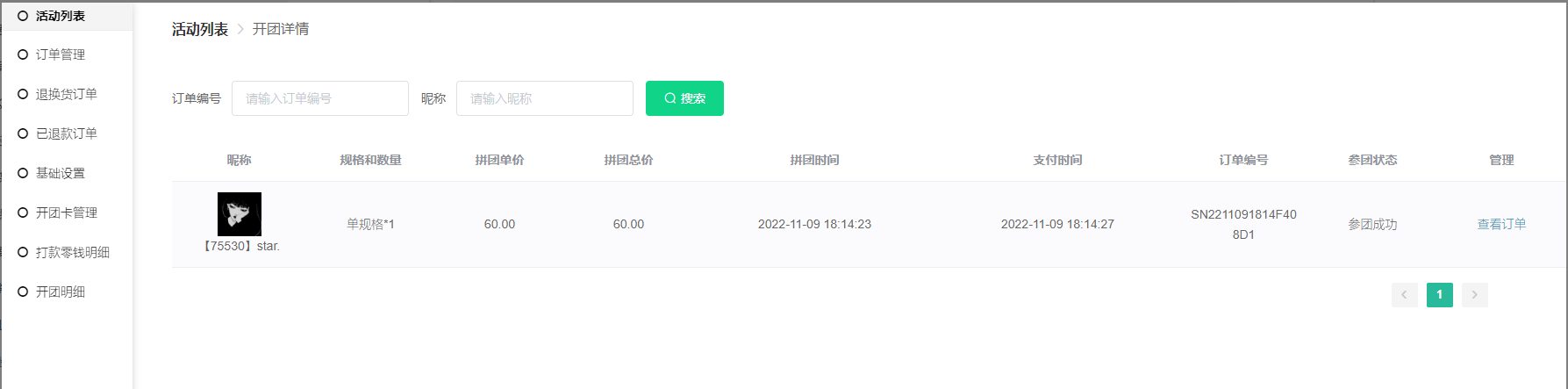 5) 点击查看详情可查看到该团的订单信息相关
