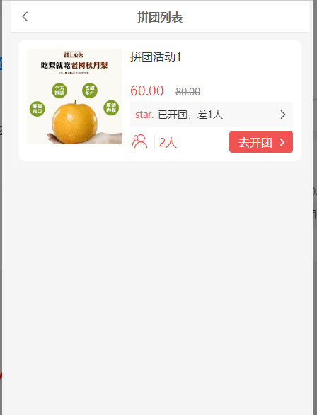 4, 开团列表:点击可查看该活动的开团列表