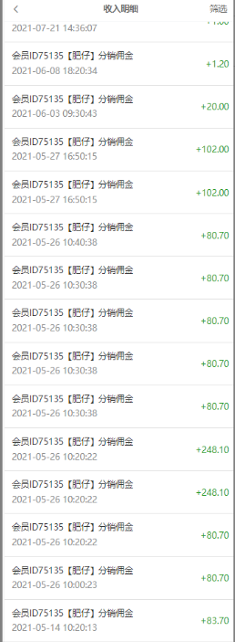 我的收入页面: