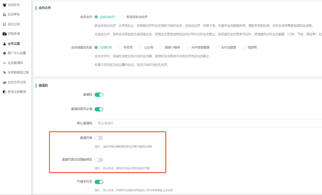 (1)全自动合并:按照会员保留优先级保留会员,其他会员登录信息自动同步到对应的会员ID上,除保留的会员登录凭证外,其他被同步的会员数据 (订单、积分、余额、下级、佣金等)全部无法合并。