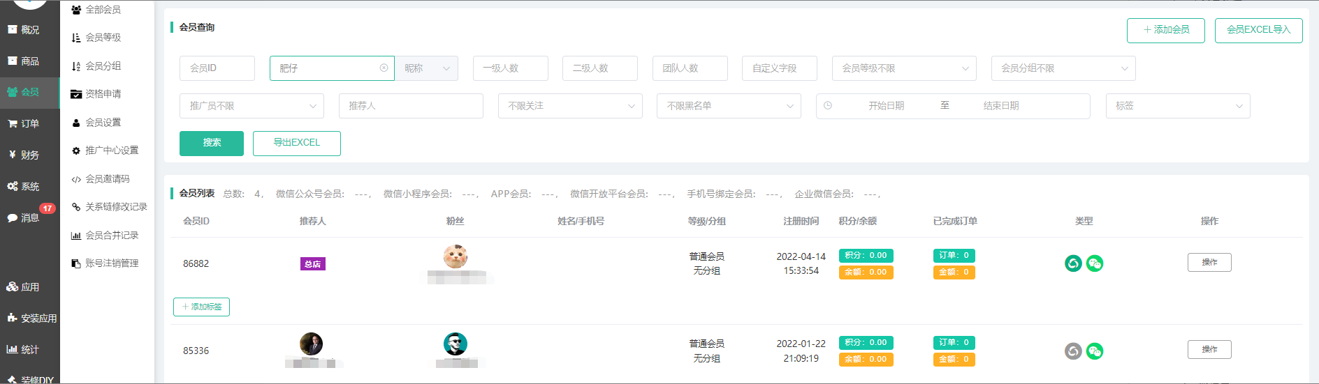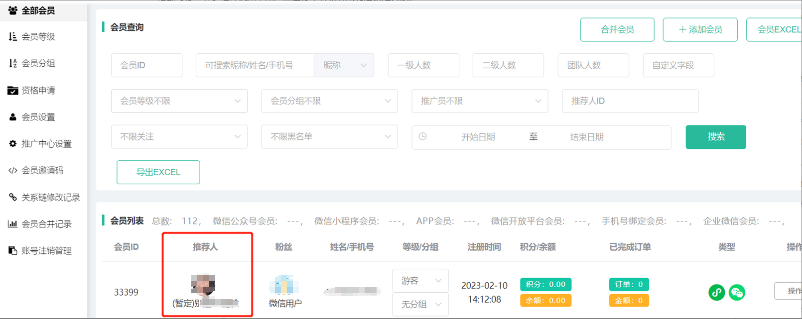 (2)手机号:手机号注册的会员。