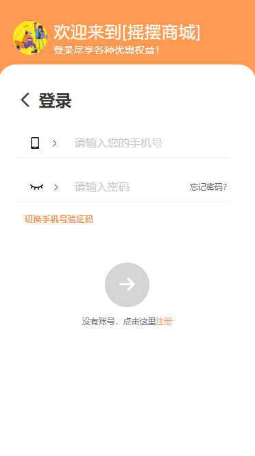 登录页模板一:默认页面,顶部颜色按照系统--商城设置的主题颜色走~