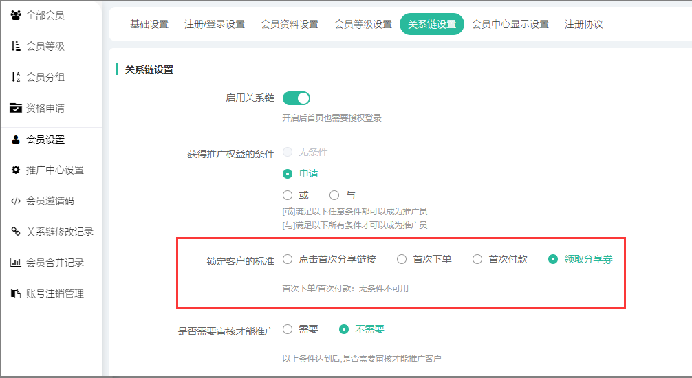 五、会员关系链设置