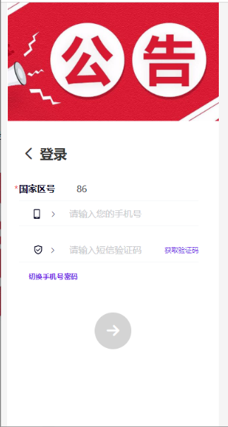 同时勾选手机验证码、密码登录,则优先使用手机验证码登录,同时支持切换密码登录。效果如下: