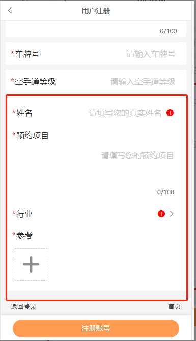 自定义字段显示名称:常应用于用户填写编号、会员卡号、身份证、车牌号等场景。