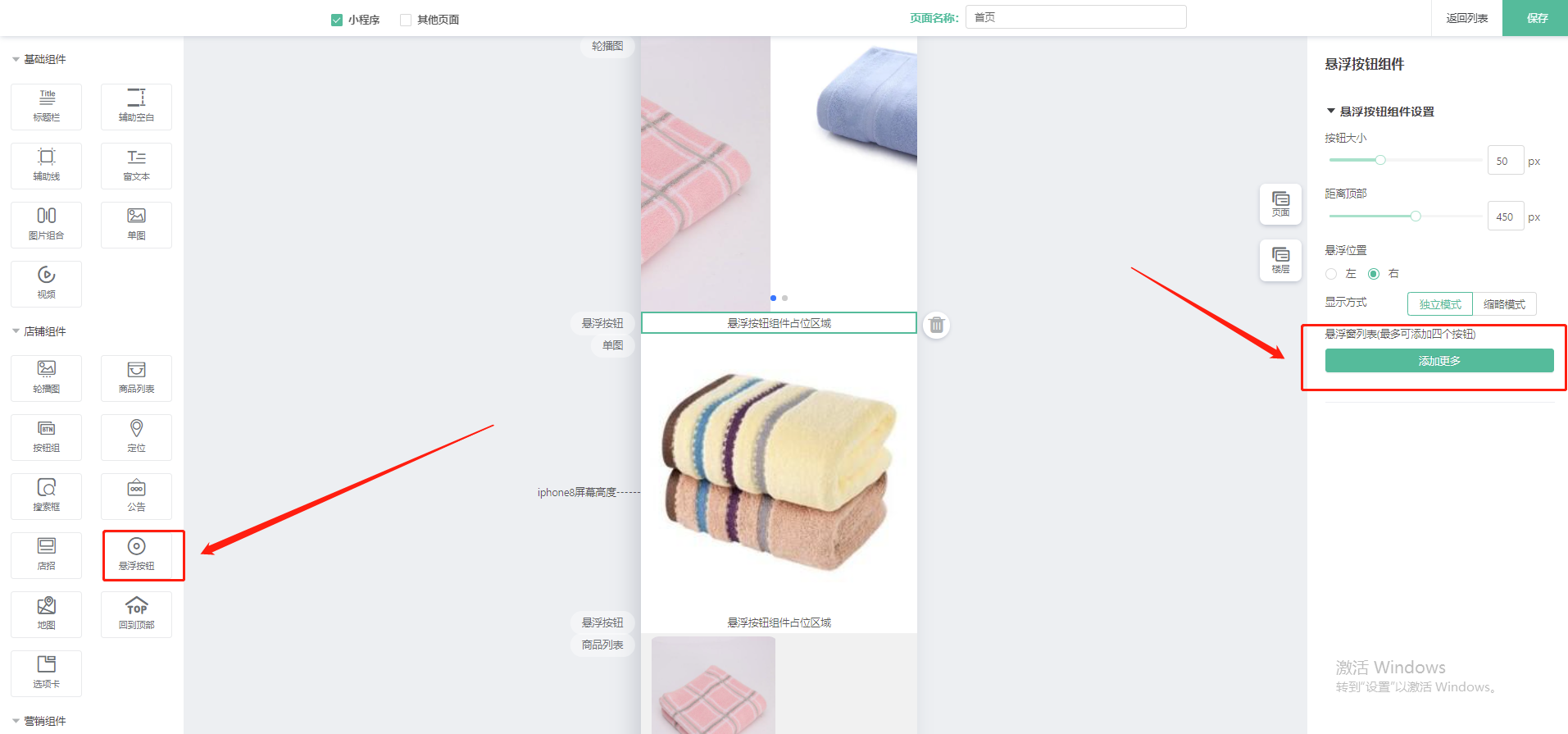 2.进入系统后台,装修DIY首页添加悬浮按钮,并添加客服,最后记得保存